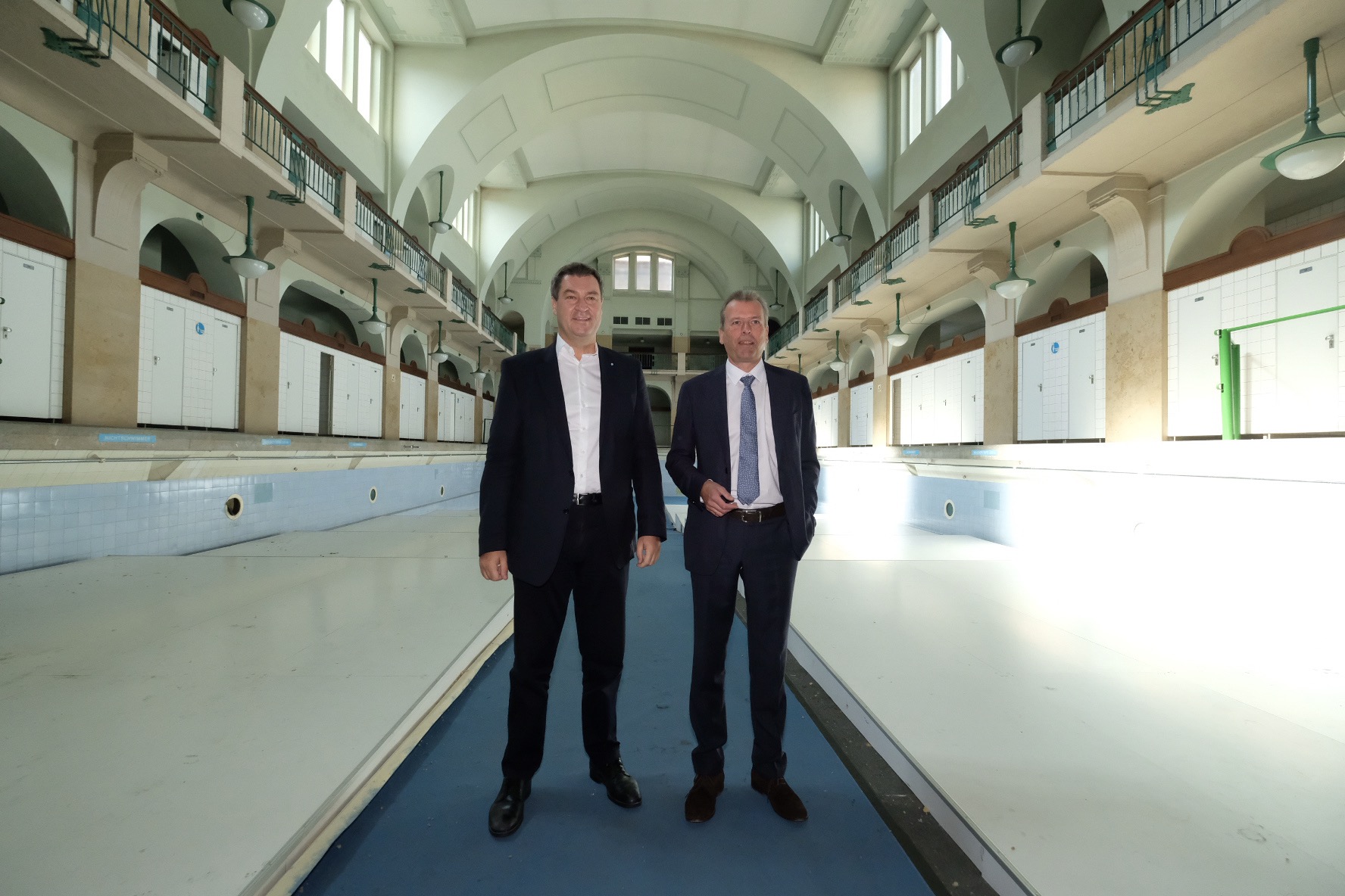 Ministerpräsident Dr. Markus Söder hat heute gemeinsam mit Nürnbergs Oberbürgermeister Dr. Ulrich Maly das Finanzierungsergebnis für das Volksbad Nürnberg verkündet. Dr. Söder: „Das Volksbad mit seiner einmaligen Jugendstilarchitektur war bis zu seiner Stilllegung noch mehr: ein wichtiger Identifikationsort im Nürnberger Westen, den wir für die Menschen in Nürnberg wiederbeleben wollen. Gemeinsam mit der Stadt Nürnberg packen wir dieses Vorhaben jetzt an und beteiligen uns mit bis zu 18 Millionen Euro an der Sanierung des Volksbades.“
